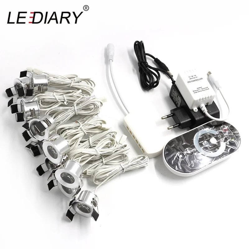Special Offer of LEDIARY 12V Mini LED Spot Downlights Dimmable Lamp Set Remote Controller Ceiling Recessed 1.5W 27mm Hole Silvery Cabinet Lights